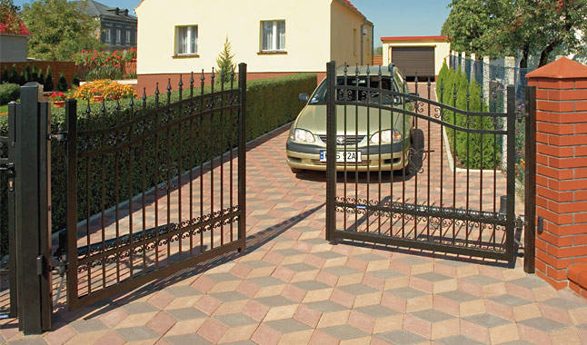 Также распашные ворота отлично подойдут, когда необходимо перекрыть проезд к дому или въезд на прилегающую территорию. Здесь возможны варианты решётчатых ворот, дабы